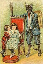 krampusz kísérte (démoni karakterek). A Télapó a jóságot és a jótettekért járó jutalmat, a krampuszok pedig gonoszságot és a rossz tettekért járó büntetést képviselték. (Hasonlóan a pogány Odin istenhez, aki egy személyben jó és rossz.)